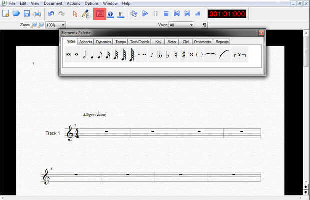 Yo he usado forte 4 gratis, que puede descargar aquí. Si no aparece la "plataforma del elemento" haga clic en el icono pequeño que he marcado en la segunda foto, para que sea visible. Simplemente añadir las notas de la pieza que desea jugar.