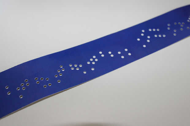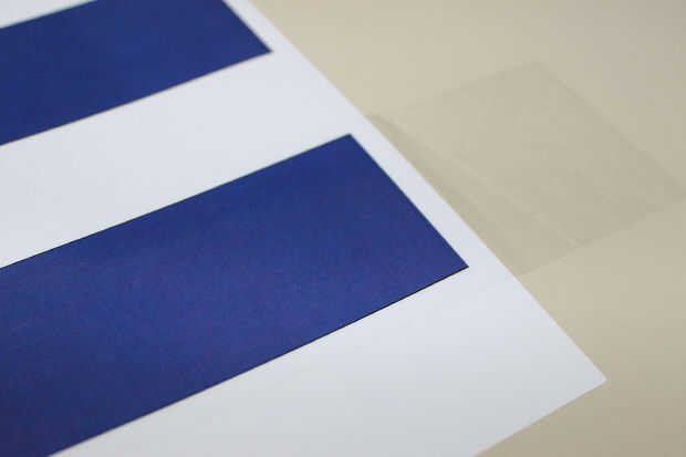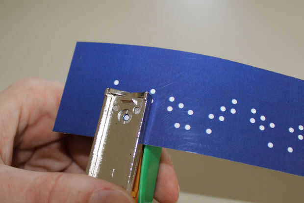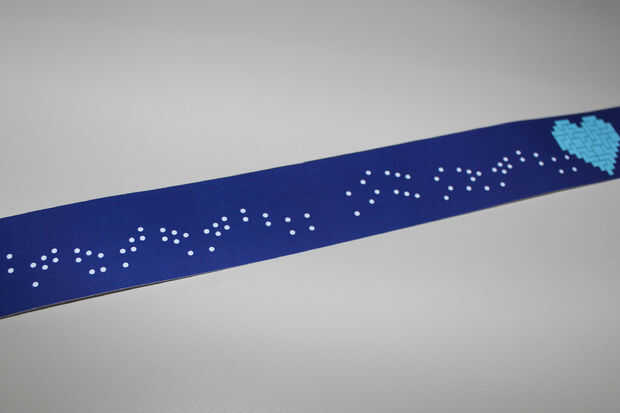 La mejor manera de proteger la impresión o dibujo es utilizar cinta de embalaje 50 mm. Quería usar en ambos sitios al principio, pero notó que hace la pulsera de a tieso. Una vez grabada la página, corte la tira a la anchura correcta de 41 mm y los agujeros.