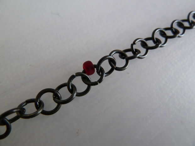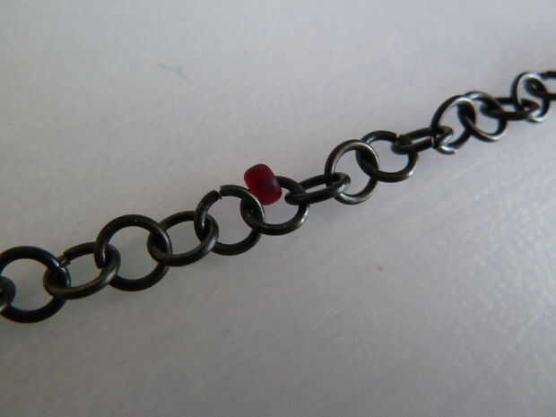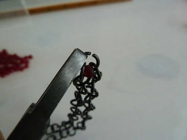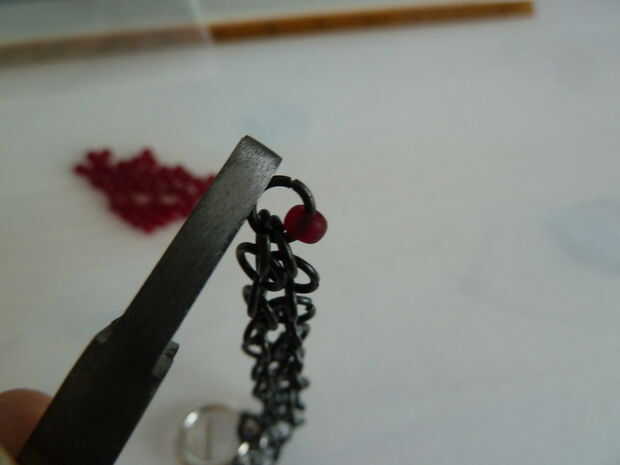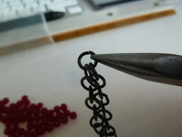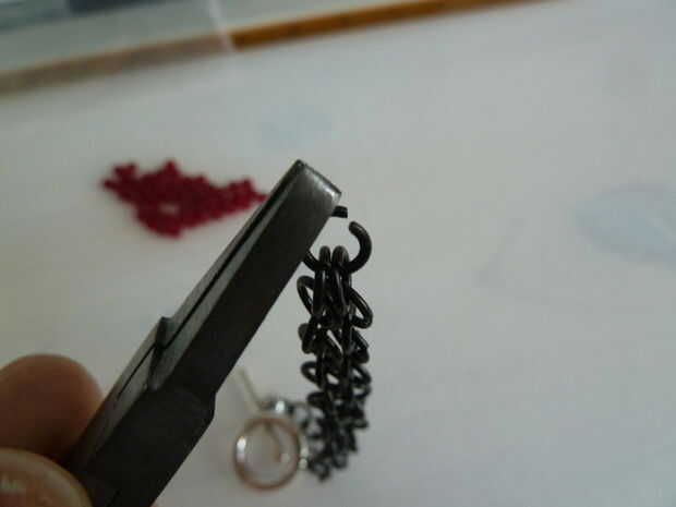 Buscar el anillo de medio salto de su pulsera y sujétalo con tus alicates. Curva abierta y coloque una capa. Vuelva a cerrar y mover el lado abierto del anillo del salto hacia el lado opuesto. Mantener y abrirlo de nuevo y añadir una segunda capa.