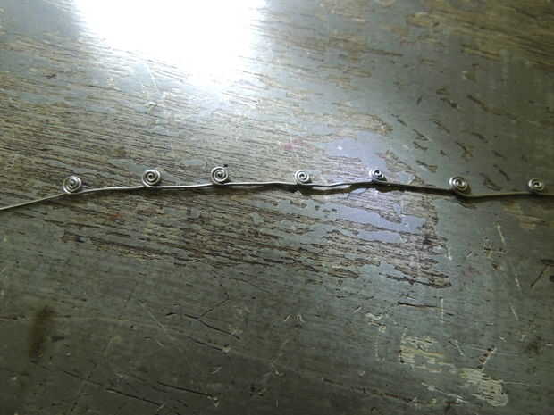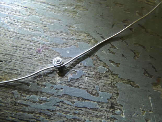 Ahora empezar a girar el alambre alrededor del lazo y parar después de 2 lazos.