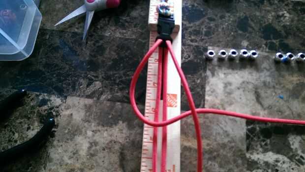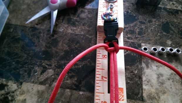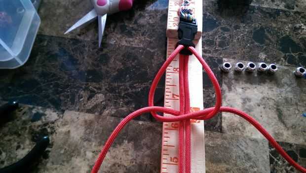 Cable de la izquierda y derecha se refieren a las puntas de trabajo que va anudando. Los dos cables interiores, a veces llamados las hebras de base, se llevan a cabo en cada extremo de las piezas de la hebilla.