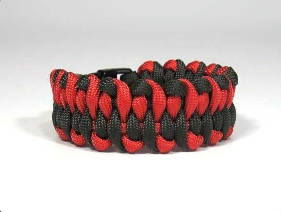 pulseras Paracord hacerlo con un Flatline o trazador (Flatline es un filamento de Paracord con la cadena de centro sacado y trenzado en la parte superior de un brazalete de Paracord y un trazador es un pedazo de micro paracord trenzado a lo largo de
