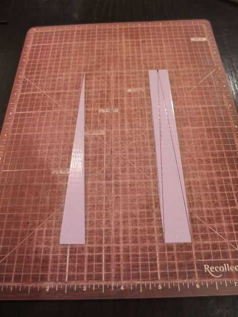 Comienza por cortar una tira de cinta adhesiva que es 8 pulgadas de largo. Luego, cortar 2 piezas 3/4 pulgada de espesor. A continuación, usando una x-acto cuchillo o las tijeras, cortadas 2 líneas que crean una forma del triángulo.