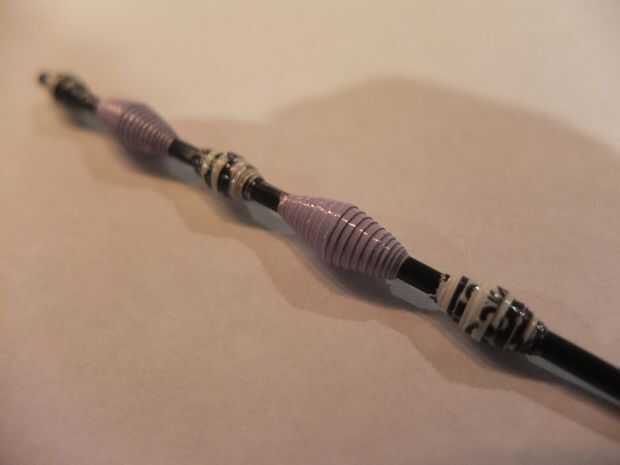 Cuando se haya secado el pulimento de clavo claro, tome unas tijeras y cortar la paja extra que rodea el grano. Luego, siguió adelante y arregló las cuentas en la cuerda elástica y había convertido en una pulsera.