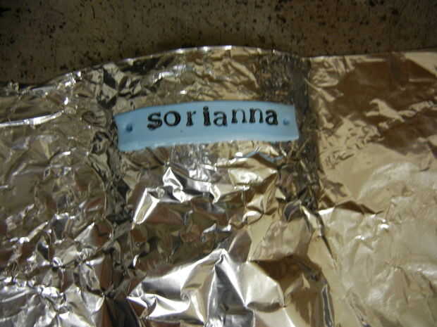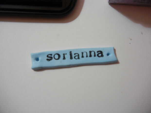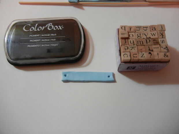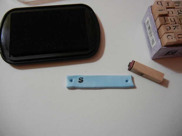 4. tinta de los sellos y estampar con cuidado el nombre o las iniciales en la arcilla.