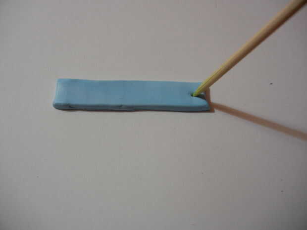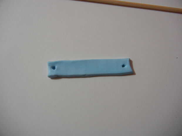 3 en los extremos del rectángulo tomar el pincho de bambú y haga dos agujeros en la arcilla.