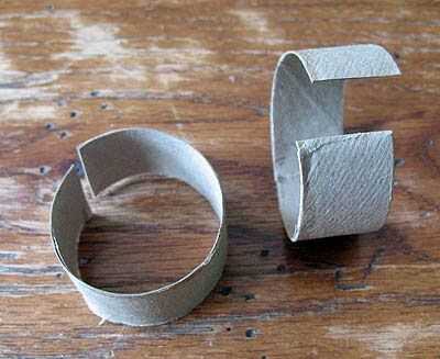 Corta tubos de cartón en 1.5″ anillos de ancho (para cada pulsera). Corte cada anillo que la pulsera puede ser fácilmente desprendida en la muñeca del niño.