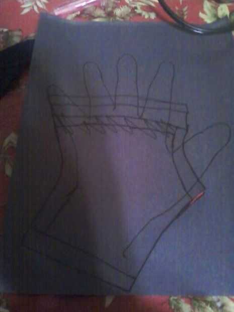Haga un patrón para calentadores de muñeca, trazando su mano y luego realizar una forma general como en mi foto.