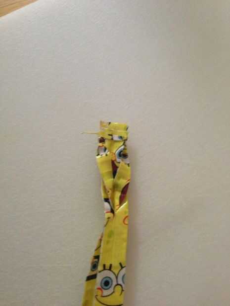 Ahora cortar una hendidura en la parte inferior pieza (la que no ha cortado aún) como antes. Luego tire de la pieza superior a través de él.