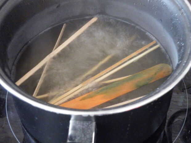 Seguí Instructable de Canucksgirl para encender un palito de arte en una pulsera, olvidando completamente que el color del palillo de la disolvería en el agua hirviendo...