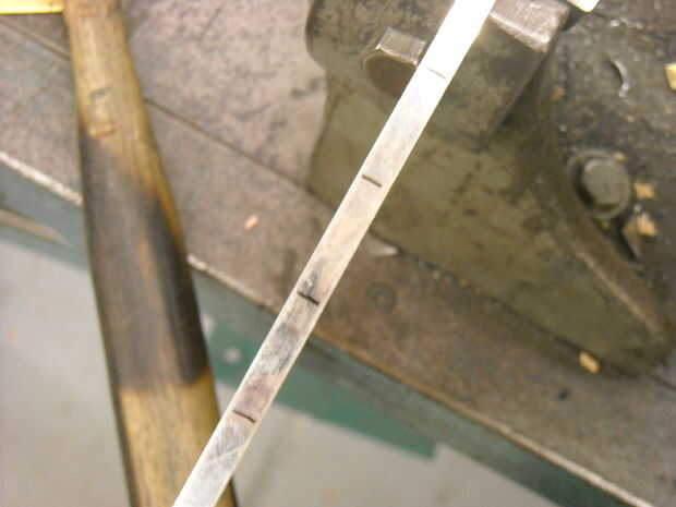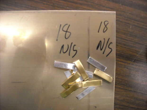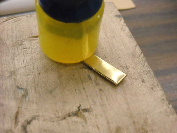 Utilice un martillo pequeño en un bloque de madera... la madera dura es mejor... para las piezas planas. Pasar un minuto conseguir las piezas de la misma longitud.