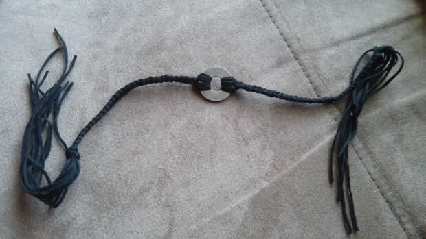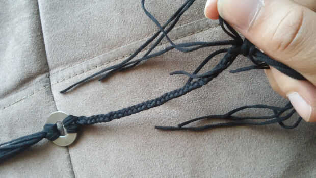 Uno un extremo de la trenza, después ató apagado I enrollado alrededor y atado un lazo en la parte trenzada para tener una forma de crear un sujetador para la pulsera