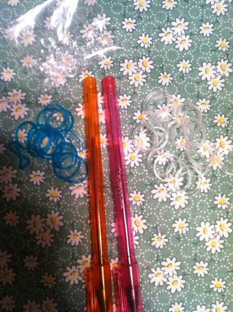 así que compré una bolsa de estas bandas de goma que viene con un gancho, broches y las bandas, pero ningún telar real arco iris de colores. No vienen con instrucciones y no sé que necesitas un telar para hacer este tipo de pulsera, pero había visto