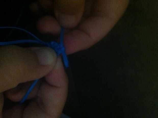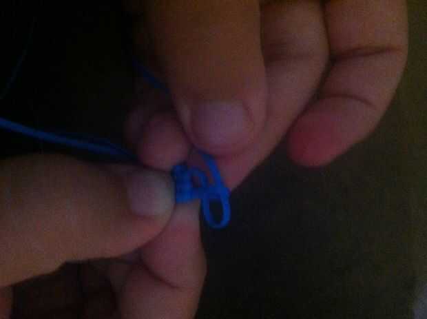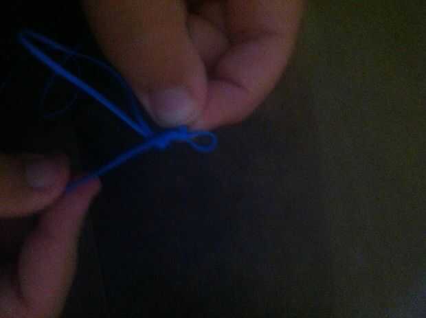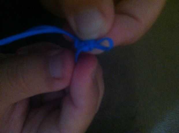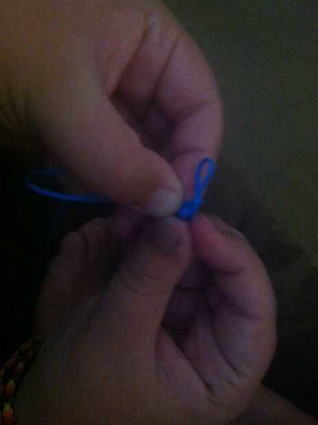 Now, make a loop. (Foto 1) Pase un lazo hecho con la otra cadena a través del primer lazo y pase a través (no tirar a través de todo el camino) (Foto 2) tire el primer lazo apretado. (Foto 3) Usando la misma cadena que tiró solo, pasar un bucle a través de otro lazo. (Foto 4) Apriete la cuerda del lazo que rodea el nuevo bucle! (Foto 5) Repita Photos(Steps) 1-5 hasta llegar a la longitud deseada.
