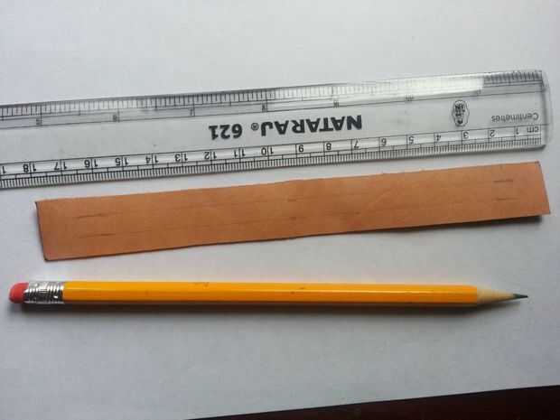 Dibuja 2 líneas que crear 3 hilos en el cuero, asegúrese de que los hilos son iguales en anchura.