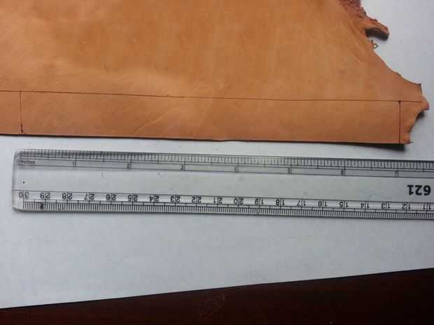 Use una regla y un lápiz (o cualquier cosa para marcar) para dibujar el contorno de la pulsera en el cuero.