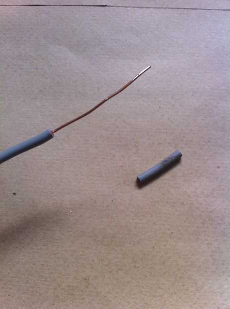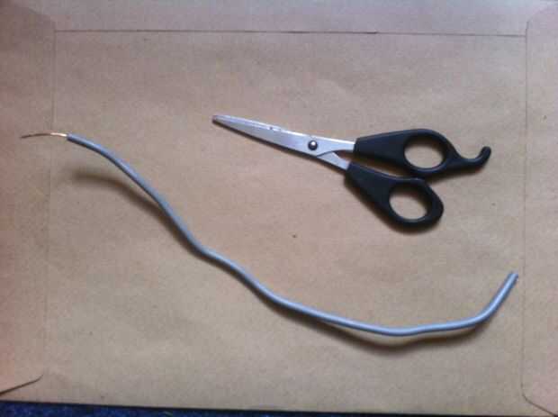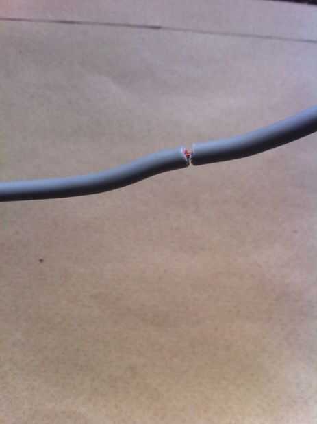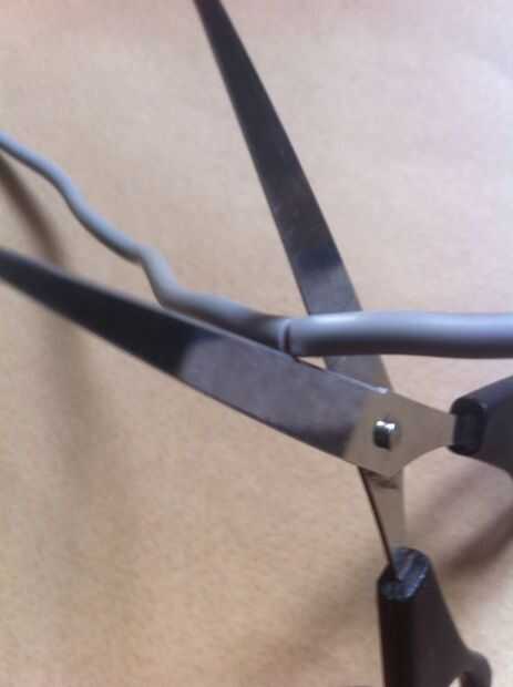 2-hacer un pequeño corte, no demasiado profundo y girar el cable en las tijeras para dejar un corte todo el camino alrededor de la parte. Esto puede tomar algo de práctica.