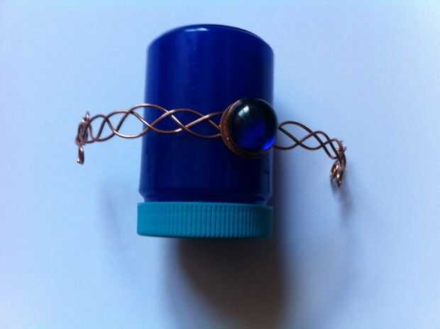 2-tomar el objeto cilíndrico y el lugar del centro de la pulsera en el lado curvo.