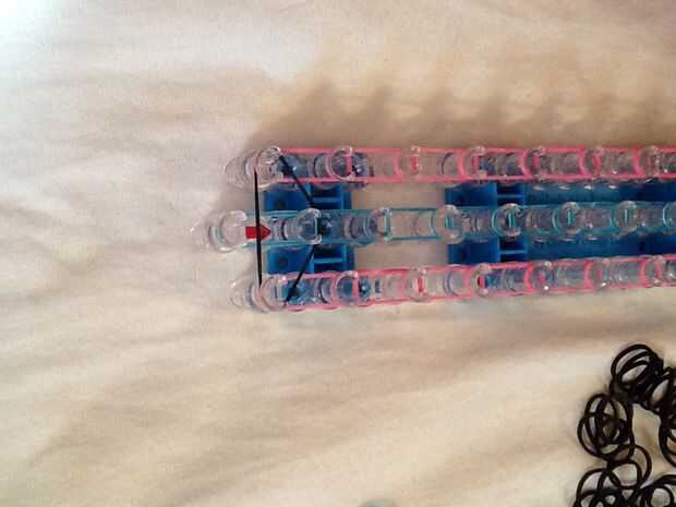 Ahora usted guarda bucle las bandas hasta llegar al final... Al llegar al final de bucle una banda extra alrededor de los tres para que sean ahora uno y enganche los extremos juntos!