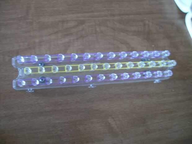 Espero que funcione para usted!Paso 1: Paso 1: reunir su equipoSe necesita:-un telar-12 bandas azul-12 bandas verdes-12 bandas púrpura-12 bandas blancas-1 banda acabado blanco-un clip de "s" o "c"Paso 2: Paso 2: colocar las bandasAsegú