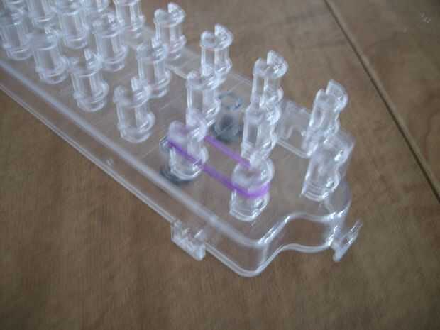 Paso 1: Configuración de telar Configurar su telar para que las filas están en forma de "v".Paso 2: bandas Toma una banda de color y toma de la clavija de la parte inferior y estirar hasta el beg justo encima de él. Lo mismo en todas las clavija