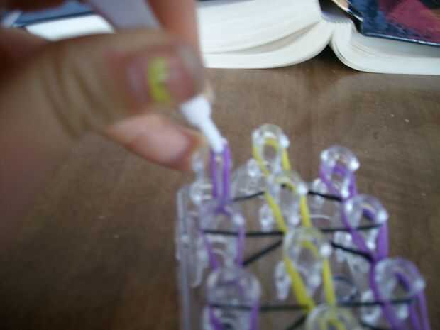 Espero que funcione para usted!Paso 1: Paso 1: reunir su equipoSe necesita:-un telar-12 bandas azul-12 bandas verdes-12 bandas púrpura-12 bandas blancas-1 banda acabado blanco-un clip de "s" o "c"Paso 2: Paso 2: colocar las bandasAsegú