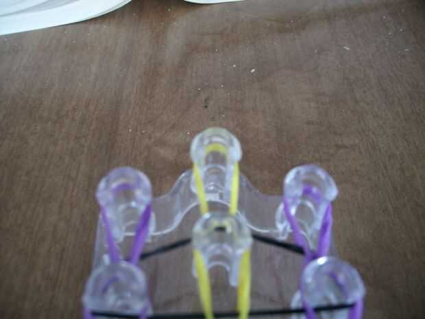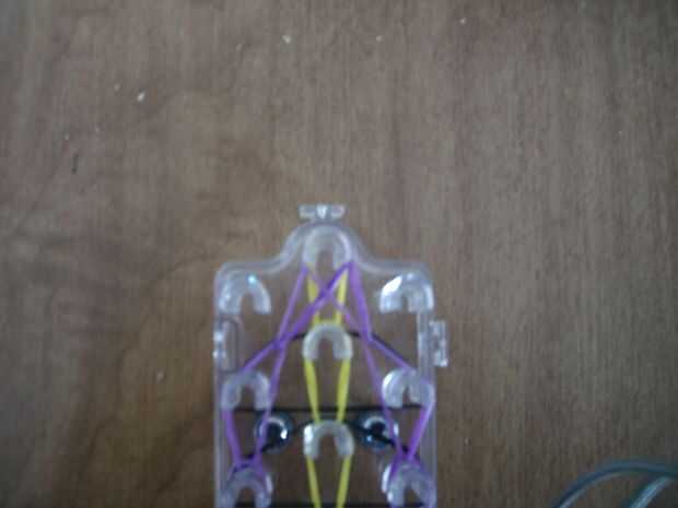 Paso 1: Configuración de telar Configurar su telar para que las filas están en forma de "v".Paso 2: bandas Toma una banda de color y toma de la clavija de la parte inferior y estirar hasta el beg justo encima de él. Lo mismo en todas las clavija