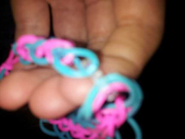 sólo necesitas 13 bandas. Cualquier colorPaso 1: Configuraren primer lugar tomar 1 venda y coloque la clavija 1.Paso 2: Siguiente paso telar debe parecerse a esto. Luego coloque las bandas en las clavijasPaso 3: Iniciar la que se avecina Tome la band