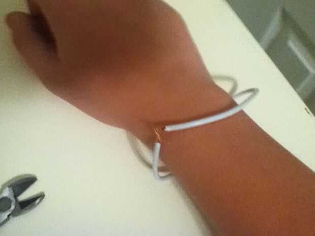esto te mostrará cómo hacer una pulsera de un cable USB de 3 pies.Cabrá una 6-7 pulgadas muñeca muy bien, si tienes una muñeca más pequeña se puede utilizar un cable más pequeño.También se puede utilizar para mantener los cables ni alambres de enredo