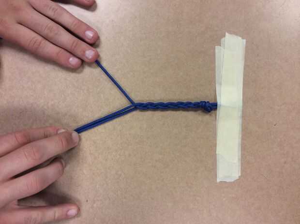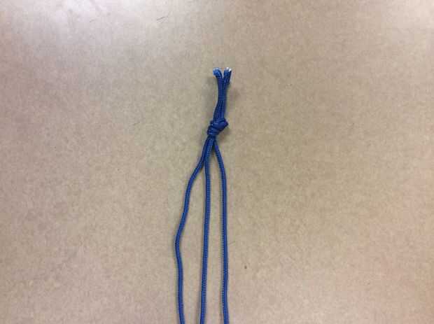 3. Haga un nudo en la cuerda en la parte superior. Comenzar a trenzar. (colocación de cinta en nudo ayuda)