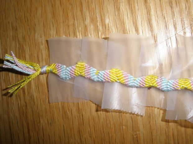 materiales: telar de arco iris - gancho/grapado - - una o tantas como quieras gomasPaso 1: En la fabricación Poner una banda elástica en el telar. Y convertirla en un patrón de zig zag.Paso 2: coser Tomar el gancho/stitcher y luego coserlos como esta