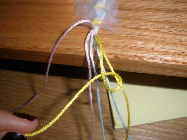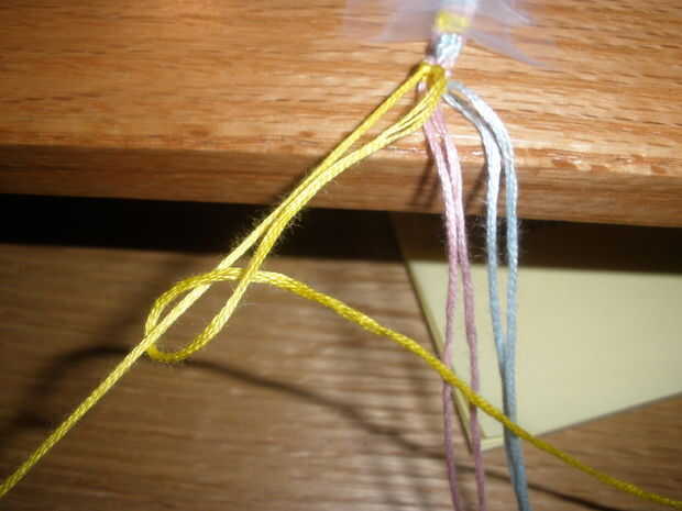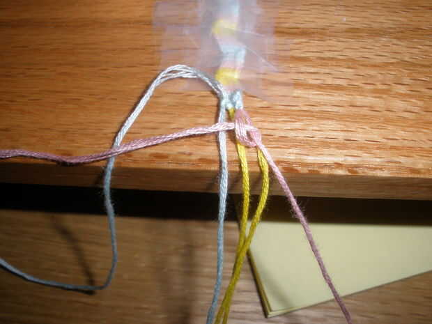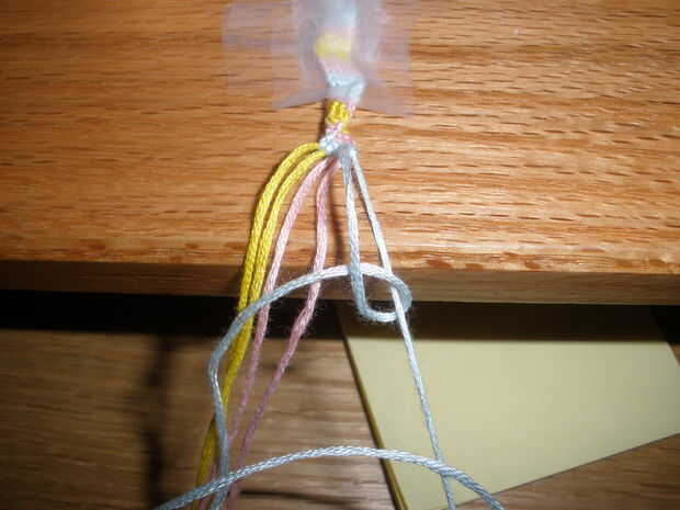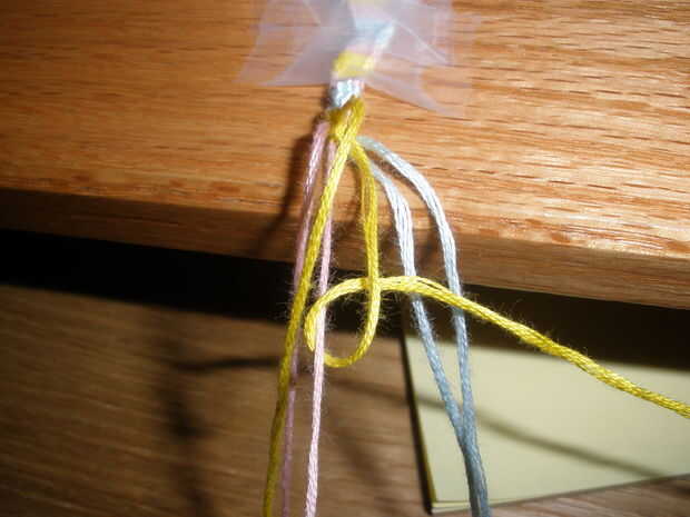 muy difícil pulsera. 6 cuerdas (3 colores). Si tiene alguna pregunta acerca de adelante, atrás, adelante-atrás, hacia atrás-adelante nudos ven mis otros tutoriales de pulseras para exámenes a fondo.
