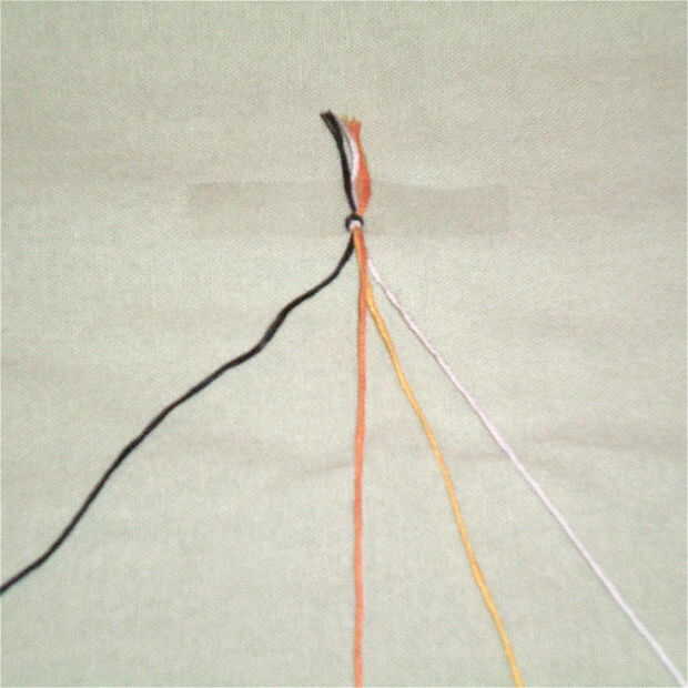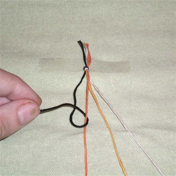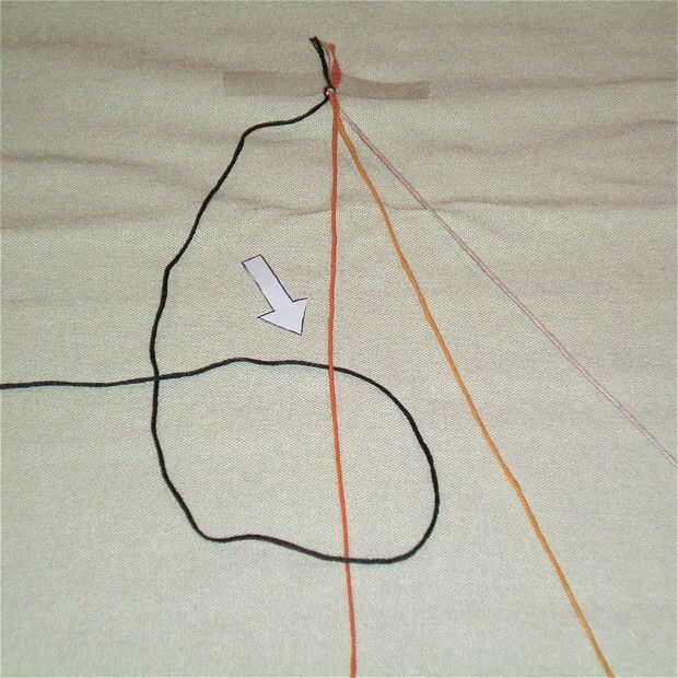 -Tire del lazo negro la cadena naranja hasta que se hace un pequeño nudo de negro en la parte superior de las cuerdas (img. 4).