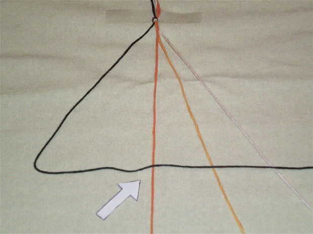 -Una vez hecha la forma «4», guía de la cadena negra debajo de la cadena de naranja para que crear un lazo negro (img. 3).