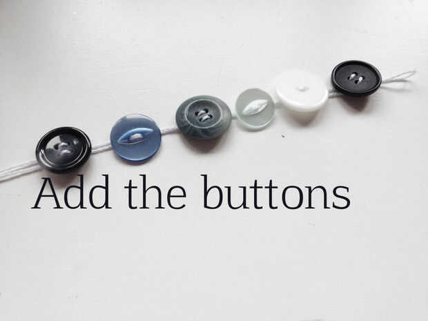 Mantener enhebrado en los botones en el orden que usted planeó previamente dejando pequeños huecos no demasiado masificada. Mida alrededor de su muñeca cuando se ve la longitud correcta.