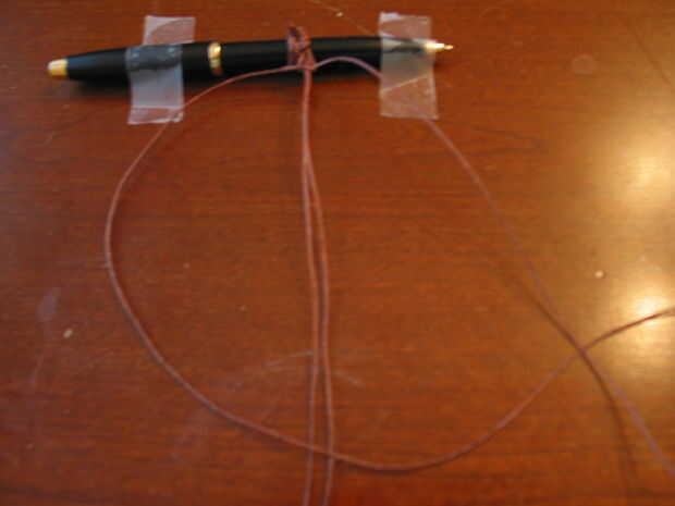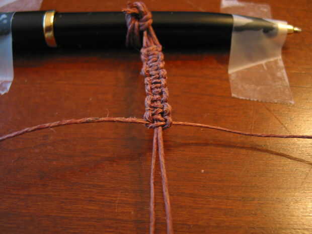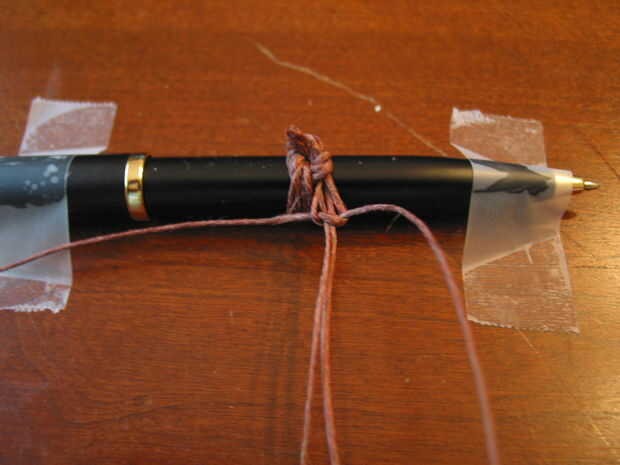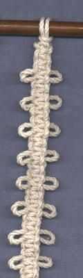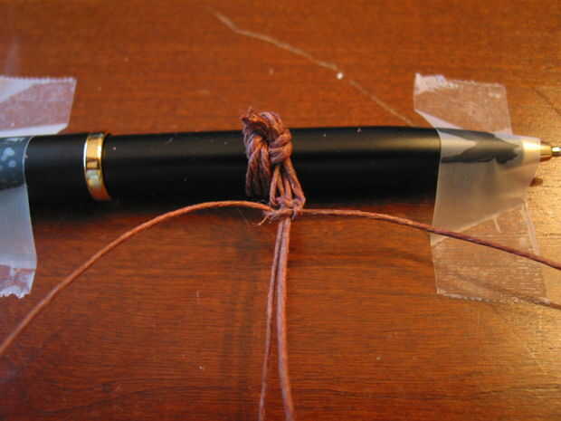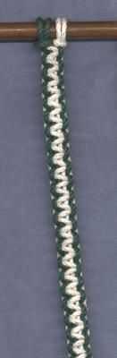 -Tome la derecha externa del filamento y ponerlo sobre los filamentos del mediados y bajo la hebra izquierda, en un torpe '4'.