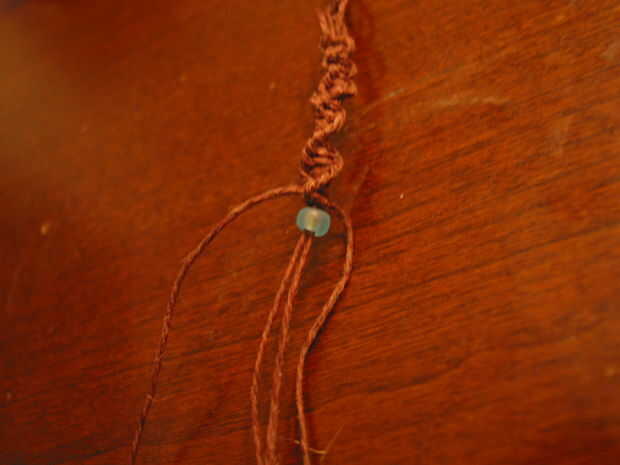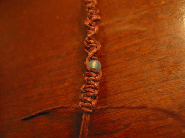 Para agregar cuentas, no importa cual nudo Deslice las cuentas en las cuerdas medias y continuar anudando.