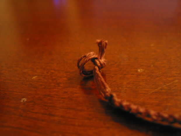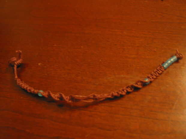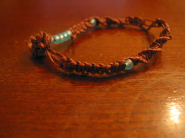 Un nudo en el extremo de sus nudos, perlas, etc.. Deslice el lápiz fuera del bucle. Trim ambos extremos. Asegúrese de que su nudo es suficientemente grande como para pasar por el bucle, pero no salen fácilmente. Todo hecho!!!!!! Disfrutar su personalmente diseñado, hecho a sí mismo, gran aspecto pulsera de cáñamo!