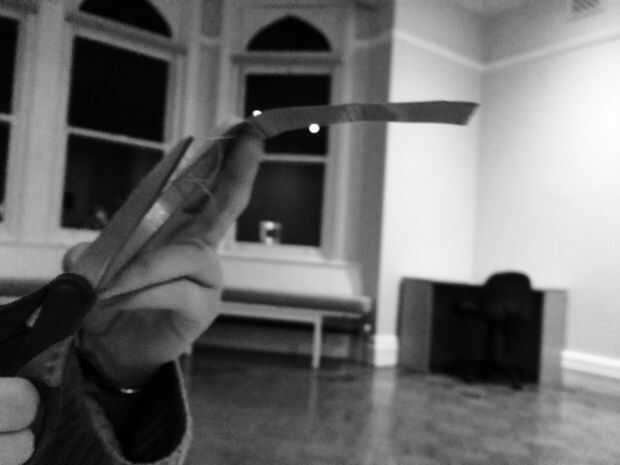 Paso 1: Cómo empezar Necesita tijeras de muñeca (opcional) cinta de conducto¿Paso 2: Que corte la cinta?Usted necesita cortar la cinta de manera que la pulsera puede deslizar y apagar cuando sea necesario para regulares muñecas 7 en obras.Paso 3: En