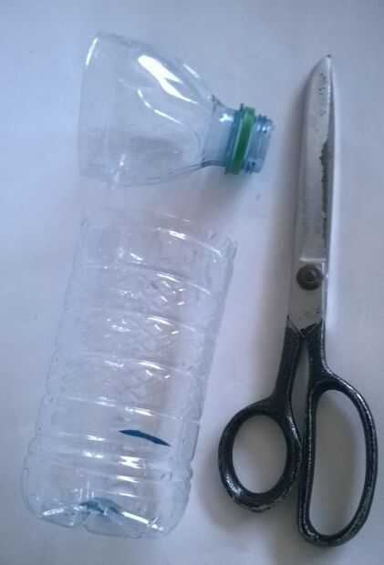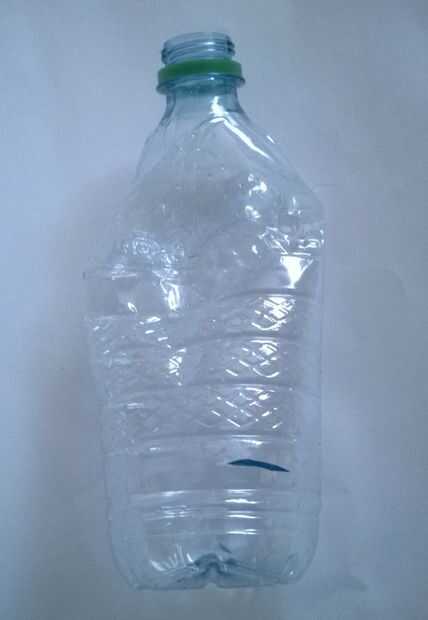 Aplastar la botella plana cerca de la cima así que usted puede cortar la parte superior. Puede descartar la parte superior o mantenerlo como un embudo.