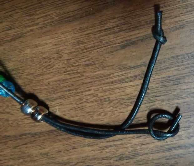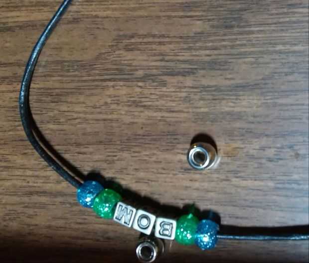 Cuando estás feliz con tu pulsera, Deslice ambos cables a través de la apertura de ambos apartar los granos (figuras 2 y 3). Si usted está teniendo apuro el conseguir a través de, tratar de rodar los extremos en sus yemas del dedo para alargar y "aplasta".