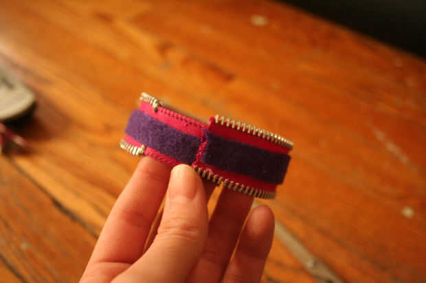 Tuve unas cremalleras colocación alrededor así que decidí hacer una pulsera de cremallera con uno de ellos. Lo hice para que puedo deslizarla dentro y fuera de mi muñeca. Puede coser a mano o utilizar una máquina. Este fue un proyecto rápido para hac