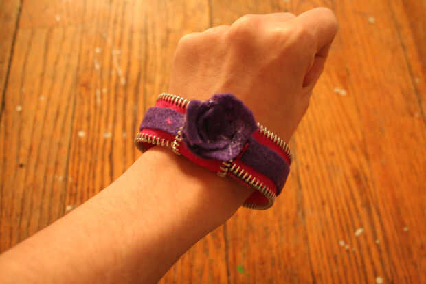 Ahora, está listo para usar en la muñeca! Esta es una divertida idea de regalo y accesorios para cualquier fashionista y usted pueden hacer más de estas pulseras en variedad de colores y tamaños! El truco aquí es asegurarse de que los colores más ligeros van encima de los colores más audaces, o si estás usando colores más audaces para cremalleras, asegúrate de que usar colores más claros para que asomen!