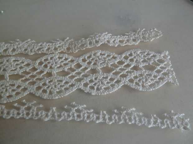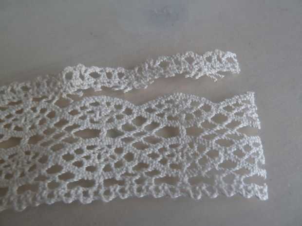 Corte el patrón y trate de dejar tan poco encaje posible todavía sobresale. Podría pegar los lados del cordón para evitar que se deshilachen, pero esto es algo que las clases de depende en su cordón, no utilicé pegamento en la mía para mantenerlos lo más cómodo posible y no han tenido ningún problema con el cordón deshilachado aún.