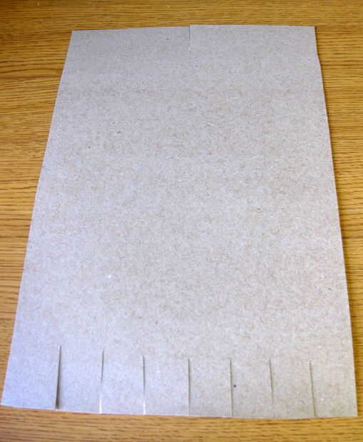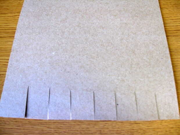3. Haga una corta hendidura vertical en la parte superior de la caja. Hacer igualmente espaciados una pulgada hendiduras a lo largo de la parte inferior entera de la pieza de cartón.