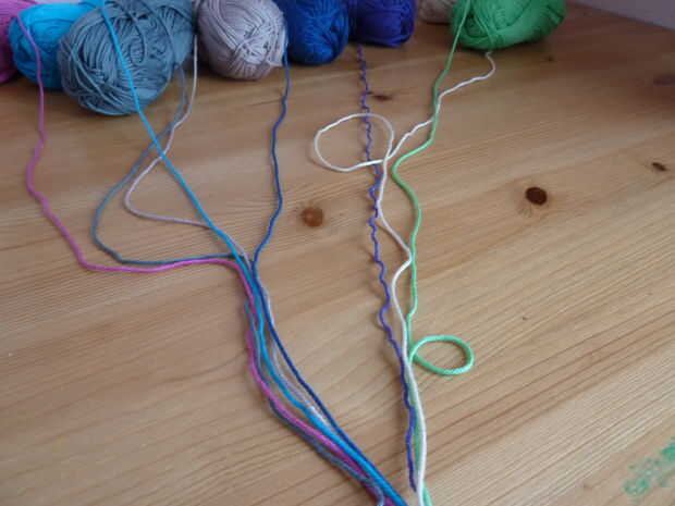 Tomar los principios de todos los ocho diferentes colores de hilo.