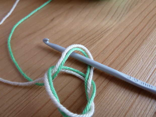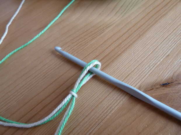 En primer lugar, usted necesita hacer un nudo del resbalón. Haga un bucle. Ponlo en el siguiente trozo de hilo. Tire del hilo a través del lazo. Poner la aguja de ganchillo en el bucle creado. Tire de ambos extremos del hilo con fuerza