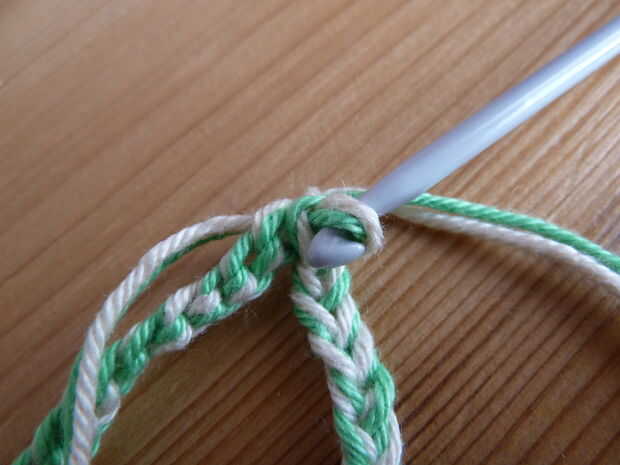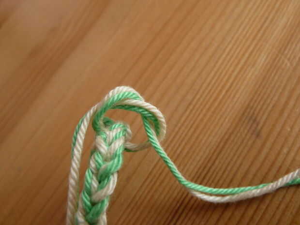 Luego, hacer más grande el lazo y tire del hilo a través de.