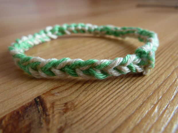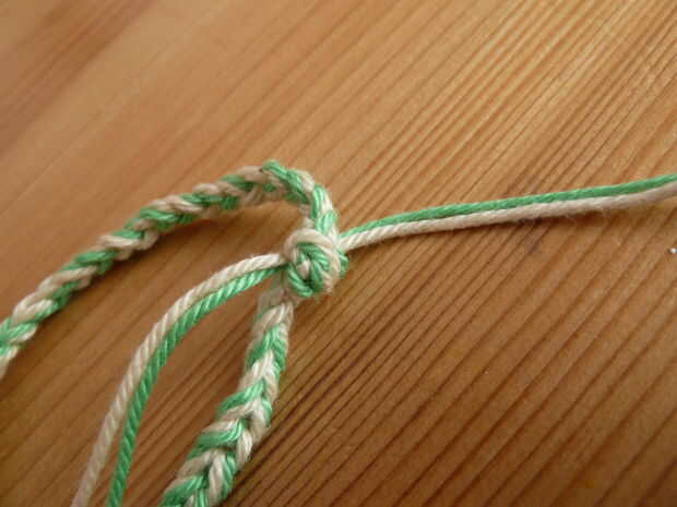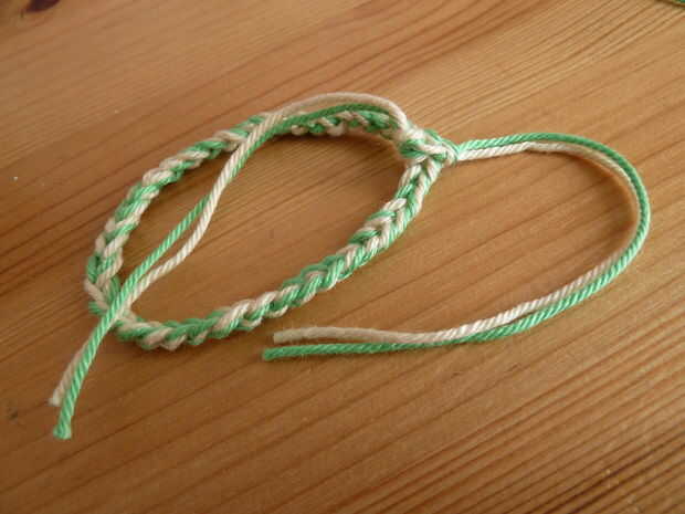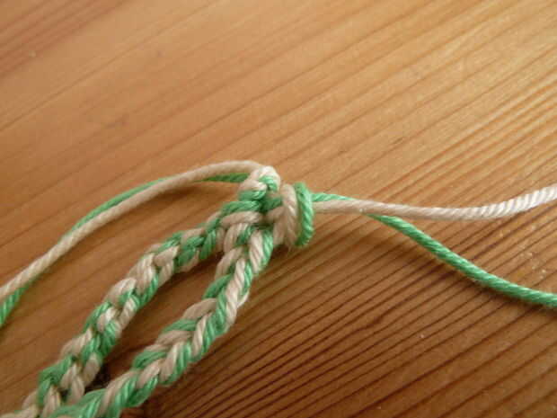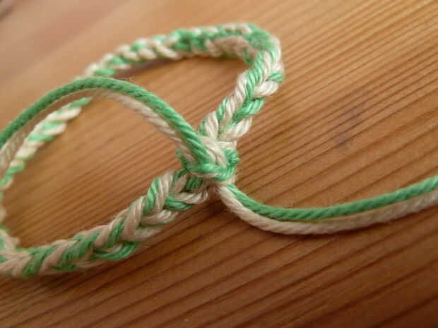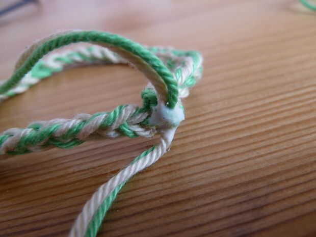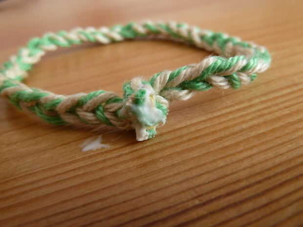 Hacer dos nudos: uno primero en el interior de la pulsera, luego uno en la parte exterior de la pulsera.