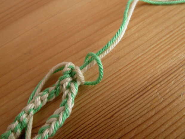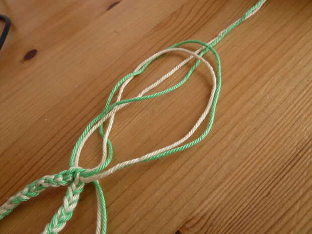 Ahora puede cortar el hilo, pero asegúrese de dejar una cola bastante larga al nudo.